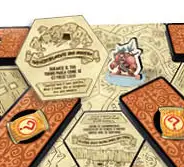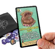 5 Dadi, 1 Bambolina Vudù Dorata, 1 Sacchetto, 1 Mappa della “Terra di Tre Quarti”, 6 Stand Up, 14 Tessere Luogo, 132 Carte (29 Artefatto, 24 Snack, 73 Maledizioni, 6 Personaggi), 30 Tessere Feticci, Regolamento.