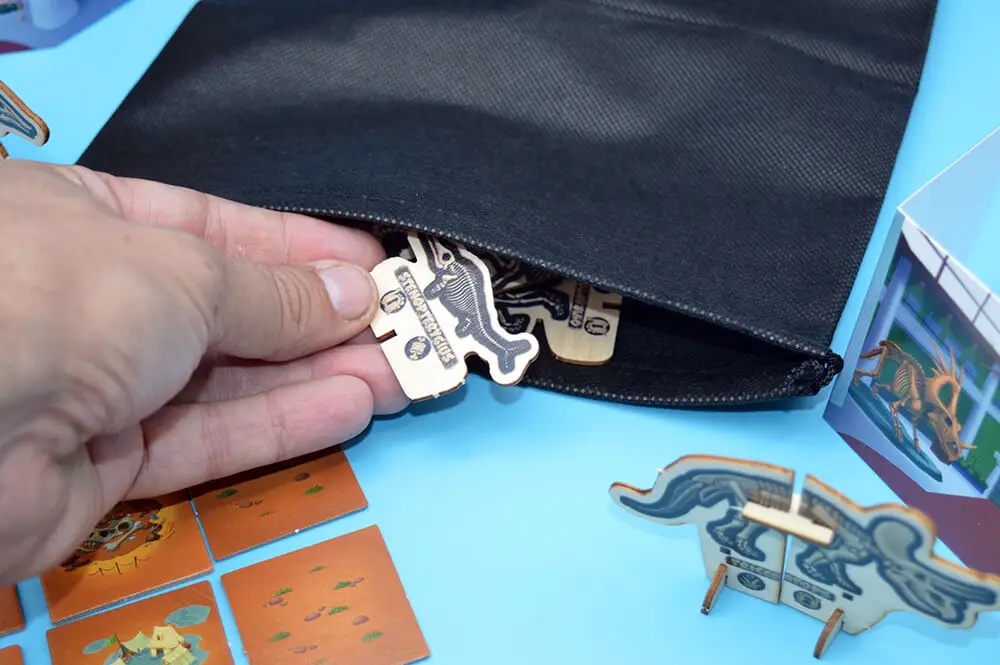Jurassic Valley è un gioco nato dal sogno che fin da bambini molti di noi hanno avuto: poter scavare e ritrovare tesori o fossili. Ogni azione ricostruisce il gusto della scoperta. I paleontologi dovranno spostarsi nelle tessere e scoprire cosa si nasconde sotto, riconoscere con il tatto nel sacchetto le parti mancanti dei dinosauri, ma attenzione molte cose gli assomigliano! La soddisfazione più grande sarà poi montare i dinosauri 3d in robusto legno. Jurassic Valley è un gioco pensato per i ragazzi dagli 8 anni fino all’età dei dinosauri!