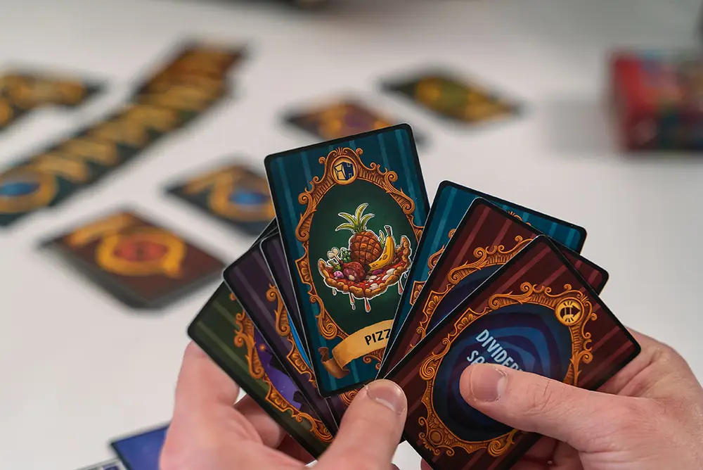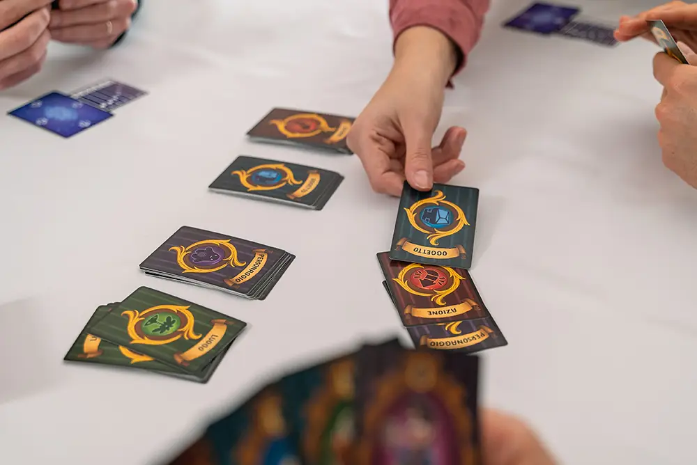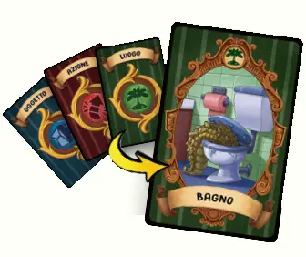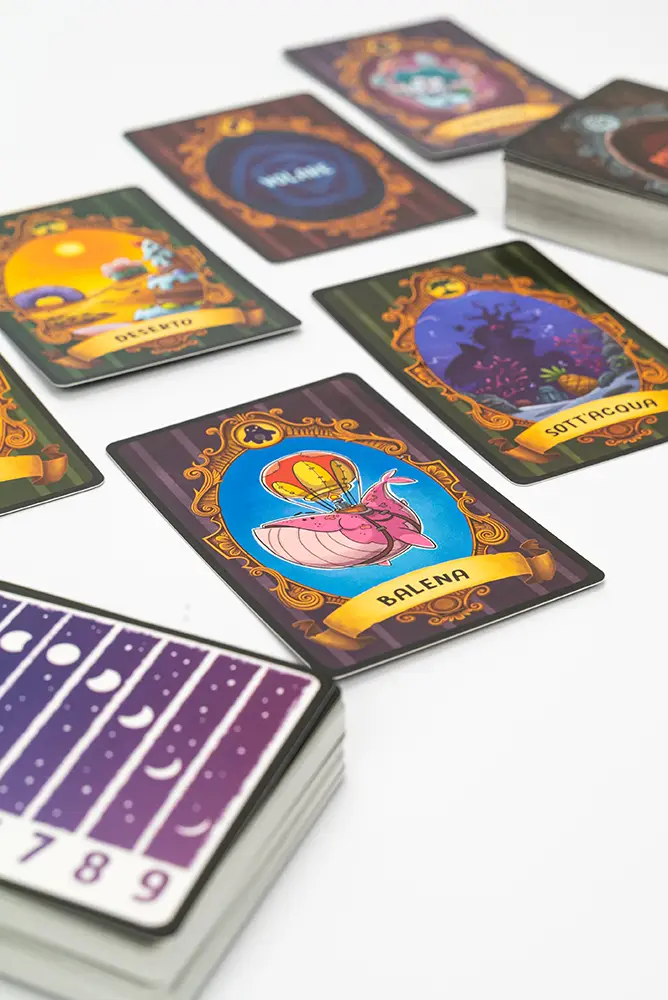 110 Carte: (17 Mangiasogni, 28 Azione, 13 Luoghi, 20 Oggetti, 20 Personaggio, 12 Punteggio), Regolamento